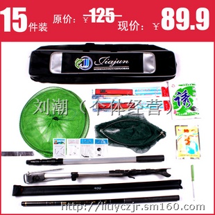 新手推荐,双冠信誉,物美价量,只需90元即可得到钓鱼学习套装(包括鱼竿、鱼竿包、可收缩抄网、可收缩鱼竿支架、脱钩器等共14个钓鱼必须品),让你在起跑线上一步到位。