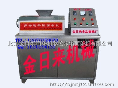 金日来带馅面条机,金日来带馅面条机价格,面条机制作方法等。说起慈禧,大家首先想到的就是那个垂帘听政的老太太,然后恨的牙痒痒。慈禧她老人家虽然是一个不称职的政治家,但是对饮食文化还是起了很大的推动作用,现在市场上异常火爆的带馅面条,据说就是慈禧老人家带动起来的。带馅面条,相传是慈禧皇太后为生日寿筵下令制作,因其制作工艺复杂费工费料,并且是御厨顶级高手手工操作,所以除少数皇族享用外,一般官员和平民百姓根本无缘问津。而现在,我们可以与慈禧同享美味,所以带馅面条的粉丝已经遍布了中国大江南北,其号召力令人侧目,在其狂热粉丝眼里,这碗面条代表了美味、养颜、高贵和随心所欲,无疑就是美食家的真谛。 实际上这种带馅面条不是人工就能做的,它是由一种叫做金日来带馅面条机生产的,金日来带馅面条机,以全自动科技创新工艺,利用现代力学原理,对其传统功能进行更新,使面粉、馅料营养成分得以完美结合,在不改变功率的情况下产品大增,一机多用,出品率高,所产带馅面条花色多样,鲜嫩细滑,美味清香,洁净卫生。 金日来带馅面条机做出的带馅面条就像它的面身一样,洁如白纸,等待人们写意创造,它薄薄的面皮是各种馅料的温床,温柔着裹着它们,成就了一条又一条的纤细面管,每吃一口都有馅料流淌舌尖,绝对会升腾出美味带来的幸福感与满足感。这种将中国饺子与中国面条混和出来的新品,由于面身延长了馅料美味的回旋,面细修长缩减了制熟的时间,可以说将美味与快捷裹起来,对与大众食客来说,既可以当作快餐,又可以当作正餐,美味随时随地享用。 金日来带馅面条的馅可以是所有的肉类如猪肉、牛肉、羊肉;所有的海鲜海味如虾、鳗、蟹、所有的鱼类等等)和所有的果蔬萝卜、胡萝卜、西红柿等等,还可以辅以各种老汤和调味品,制作五彩带馅面条时还可以用蔬菜水果汁和鸡蛋代替水来和面,所以带馅面条的营养成分与传统面条相比,营养更加全面丰富,能够全方位地补充人体对营养的需求,符合现代人的消费需求。