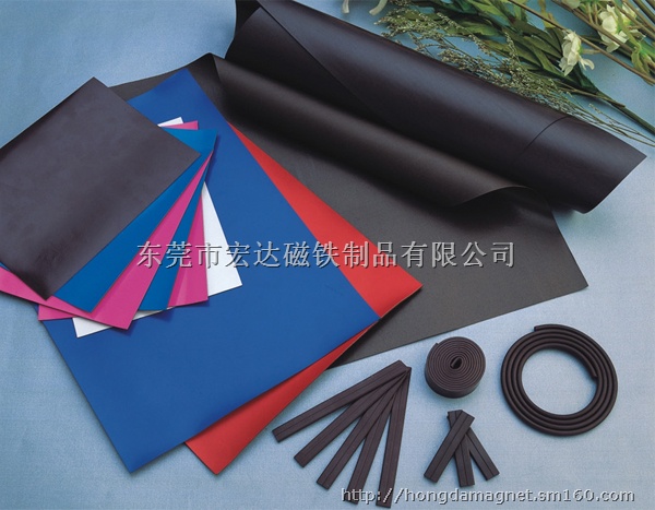 橡胶磁:产品主要包括橡胶磁片、铁粉胶片、挤出磁条、冰箱贴等磁性制品,可根据具体的要求做成卷片、卷条、各中形状的尺寸规格(图型),可过UV亮(哑)光油,裱PVC、双面胶、进口3M胶、四色印刷等,可单面、双面多极充磁,厚度0.3—10mm、宽度5—600mm、长度可按实际需要分切或卷型。