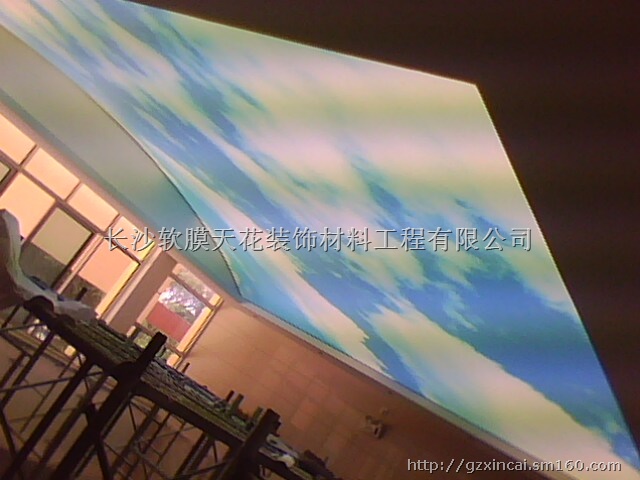 白色软膜天花 白色软膜喷绘图案拉膜天花批发软膜天花(又称为柔性天花,拉膜天花,拉展天花,透光软膜)的正规厂家,主要提供软膜生产、安装、维护。软膜天花是主营项目,产品种类繁多:透光膜,金属膜,光面膜,鲸皮膜,镜面膜,彩绘膜,基本膜等近百个品种的供应。软膜天花采用了特殊的聚氯乙烯材料制造,其特点在于可完成任何创意多变的造型,直接打破了传统天花平板无造型的劣势,色彩丰富并拥有可透光材质。在酒店大堂、大型卖场、音乐厅、娱乐场所、艺术装饰、展览展示等场地,因空间大,以往都采用小块天花拼装而成。而采用软膜天花可以把大型场地的辉煌气派展现的淋漓尽至,正逐步成为室内装饰业首选的天花产品。