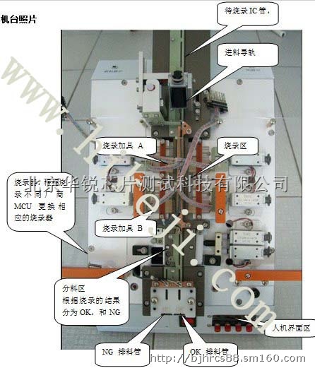 IC自动烧录测试机台主要是为工厂,设计公/司烧录IC所设计。(i三6五ii四ooo6),此方案解决了目前大多数工厂使用人工烧录所带来的效率低,不良率高的缺点,也符合工厂,设计公/司对生产工具成本的要求。目前主要有DIP300mil 、SOP300mil、SOP150mil、SSOP300mil等封装IC的烧录机台。在更换不同厂家的编程器,就可以烧录不同厂家的IC。
