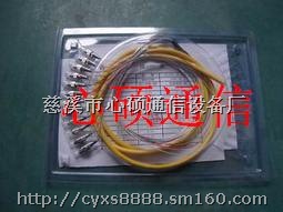 束状尾纤,又称尾纤束,只有一端有连接头,而另一端是一根光纤的断头,通过熔接与其他光缆纤芯相连,常出现在光纤终端盒内,用于连接光缆与终端设备。尾纤分为多模尾纤和单模尾纤。多模尾纤为橙色,波长为850nm,传输距离为?xml:namespace>500m,用于短距离互联。单模尾纤为黄色,波长有两种,1310nm和1550nm,传输距离分别为10km和40km。 它由12根尾纤组成,颜色依次为:蓝、橙、绿、棕、灰、白、红、黑、黄、紫、粉红、浅蓝。