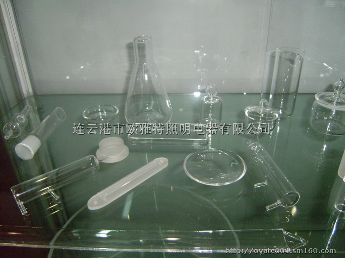 实验室用石英仪器: 石英方圆管、石英激光腔、石英三通、石英截门、石英放水瓶、石英量筒、石英蒸馏瓶、石英螺旋管、石英瓶颈、石英蒸馏套管、石英烧杯、石英坩埚、石英烧瓶、石英反应釜、石英舟、石英球磨、石英筛板塔、石英蒸发皿、石英氧化管、石英比色皿、石英棱镜、石英颗粒等。