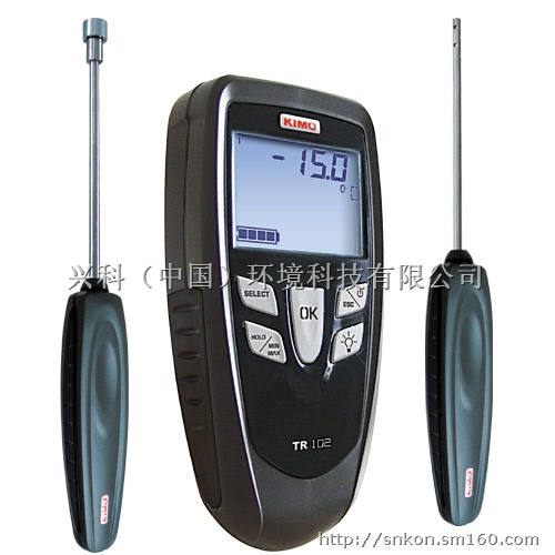 | ?双行蓝色背光 LCD 数字显示屏 ?可同时连接两组温度探头 ?计算和显示双通道的温度相差值 ΔT ?可选购不同种类 PT100 铂金电阻温度探头 ?可选购黑球和温度探头测量黑球温度 ?温度量程: -100 ~ +400 oC | 型号 | TR 102 | | 温度通道数 | 双通道 | | 单位 | oC , oF | | 量程 | - 100 ~ + 400 oC | | 精确度 | ±0.3 oC | | 分辨率 | 0.1 oC | | 测量元件 | A 级 PT100 铂金电阻温度探头 ( 可依据需要自行选择探头 ) | | 显示 | 2 行 LCD 数字显示屏 ( 背光功能 ) , 尺寸 50 x 34.9 mm | | 电源供应 | 1 节 9V 碱性电池 | | 语言 | 法语 , 英语 | | 制造地 | 法国 | 可选购铂金电阻 PT100 温度探头: | 型号 / 产品用途 | 产品规格 | 产品图片 | | SPG 150 通用型温度探头 | 量程: - 50 ~ +250 °C 探头长度: 150 mm 卷式电缆长度: 2.4 m | | | SPG 250 通用型温度探头 | 量程: - 50 ~ +250 °C 探头长度: 250 mm 卷式电缆长度: 2.4 m | | | SPA 150 环境空气温度探头 | 量程: - 50 ~ +250 °C 探头长度: 150 mm 卷式电缆长度: 2.4 m | |