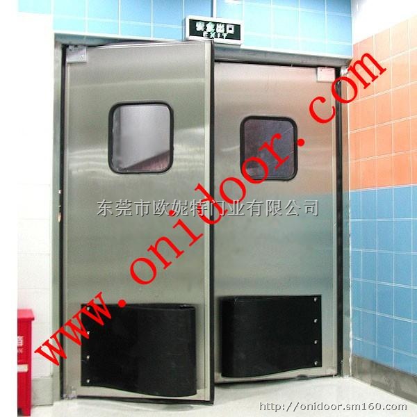 2、不锈钢自由防门四周镶胡橡胶封条,具备了防虫,隔尘,隔风,隔异味的功能,从而达到提高环境卫生的功效。 而传统的木质门,铝合金门具备此功效并不明显,因而不锈钢自由防撞门相比普通的门更符合卫生标准的需求。