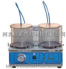 10、然后强烈振荡负压容器,使水充分搅动混合料,除去剩余的气泡。每隔2min晃动若干次,直至不见气泡出现为止。为使气泡容易除去,可在水中加有0.01%浓度的表面活性剂(如每100ml水中加0.01g洗涤灵)。主要技术参数:电源电压 220V±10% 容器容积4300ml×2只