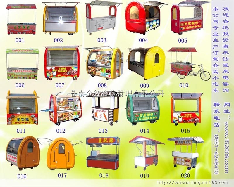 2012热销产品、浙江苍南金智餐饮管理有限公司研制的新一代无烟烧烤多功能小吃车,以独特的炉体结构设计不但使炭火烧烤真正实现了无烟环保,还节省用炭量50%以上的同时,将传统的炭火烧烤特有的干香味推向了极致。千古奇味多功能小吃车一机多用,一台小吃车几乎可以做出目前休闲小吃市场所有热门项目,可以将烧烤、油炸、涮烫、铁板烧、关东煮、章鱼小丸子等休闲小吃任意组合,随时变换,什么赚钱就能做什么。拥有全国品种最全、造型美观、新颖别致、产品口味丰富的系列小吃车,投资千元就能月赚8000-10000元以上,是小本投资者、失业人士、打工者小本创业致富的首选项目。