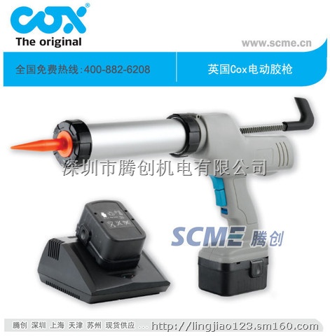 PC Cox最新设计制造的充电式电动胶枪快速,高效及易用,几乎适用于各种粘度的胶粘剂,适用于310ml,400ml及 600ml 腊肠胶,也适用于310ml,400ml及US Quart筒装胶,COX电动胶枪使用一个充满电的14.4VNiCad电池可打150支310 ml 的筒装胶。