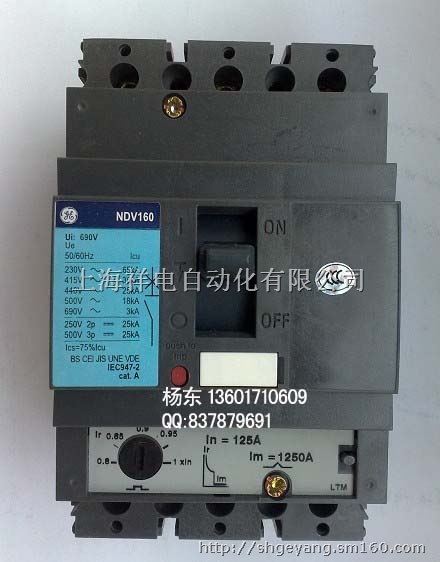 美国GE通用塑壳断路器NDV160ND160系列塑壳断路器额定电流为160A,既可以用于DIN导轨式安装环境,也可用于工业中。ND160提供的接线端子,用于直接一根或两根导线面积最高达95平方毫米。另外,ND160可作为一种热磁开关,作为一种出线和外部设备的保护装置,其热磁脱扣单元可提供至80KA(400V)过载和短路保护等级。TEL:021-66303413 杨东