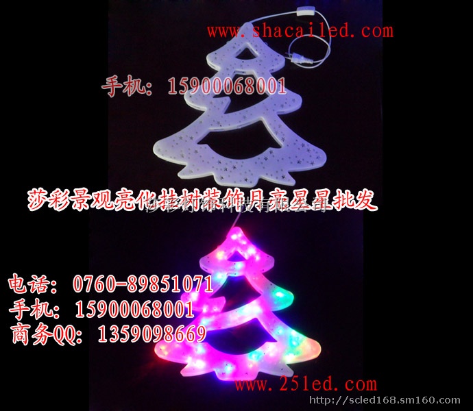 LED圣诞节装饰彩灯挂件LED雪花/月亮/圣诞树1、节能 2、寿命长(理论上可达60000小时以上)3、发光纯 4、亮度高、5、搬动不易破坏、可重复使用 6、冷光源,不易发热...