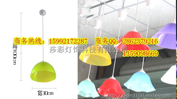 罩子灯/吸顶吊线罩子灯/装饰灯具/中号罩子灯促销/批发/超市吊灯 蔬菜灯 生鲜灯 水果吊灯 麻将吊灯 烧烤吊灯 溜冰场吊灯/品牌: 莎彩灯饰 型号: SC1689 颜色分类: 天蓝色 深紫色 粉红色 浅绿色 白色 紫色 莎彩灯饰红色 蓝色 桔色 黄色 透明灯身材质: 亚克力灯罩材质: 亚克力光源类型: 白炽灯 LED节能灯 工艺: 染色光源个数: 1照射面积: 10-15平方米灯具是否带光源: 不带光源适合的光源功率: 21-30W电压: 220V适用空间: 客厅 餐厅 饭厅 书房 卧室 其它风格: 简约现代[莎彩灯饰厂]
