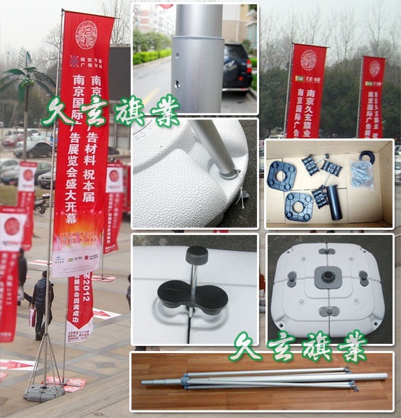 规 格:加上底座总高7.4米,由四块ABS塑料底座组成,可注沙注水,画面尺寸:最宽1.2M 最高可做到6.5M 根据各人需求的不同可自已选择旗织尺寸