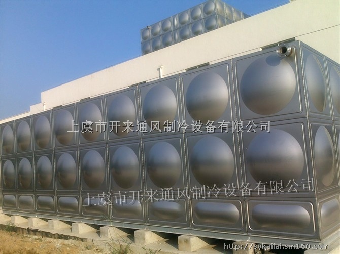 不锈钢水箱 不锈钢装配式水箱是用不锈钢冲压成标准块,在现场组装,采用氩弧焊焊接或螺栓紧固两种方式。不锈蚀、不污染、抗老化,提高了水的洁净度,延长了水箱的使用寿命。也保证了生活用水卫生,符合环保要求。体积1—100立方米的产品为定型产品,用户也根据水箱容积提出长、宽、高尺寸进行制作。 | |