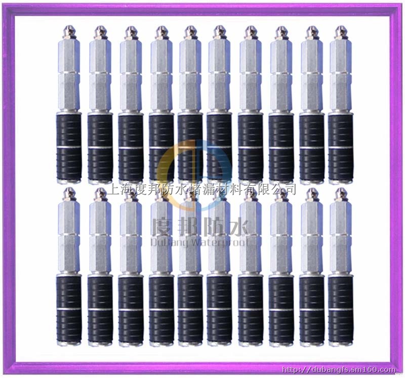 1、高压止水针头:是利用环压紧固的原理。头部设有单向截止阀,可防止浆液在高压推挤下倒喷。环压膨胀部分用橡胶套管,直径为13MM,塞入孔径为14MM的注浆孔上,拧紧环压螺栓,压缩橡胶套管,使注浆嘴固定在注浆孔内。(注浆嘴的单向阀要在0.4KN以上压力才能打开,因此注浆压力必须高于这个数值)。高压止水针头目前共有四种类型:铜嘴、铝嘴、钢嘴、 塑料嘴 , 前三种为环压式。 分为前止水型,即灌浆嘴进料口的逆止阀门设在 进口处;后止水型, 即进料口的逆止阀门设在出口处 ,可视具体情况进行选择。前止水型埋设好嘴后,可将前端拧下来进行泄压排水, 待灌浆时再拧上去;后止水型埋好嘴,就不能排水泄压了,但施工完毕即可拆除灌浆嘴 进行下道工序的施工。 常用灌浆嘴的橡胶密封部分直径为14mm,需配14mm钻头。对密实型结构选用长度为7~8cm的灌浆嘴即可;对松散型结构,可选用长度为10~15cm的灌浆嘴。