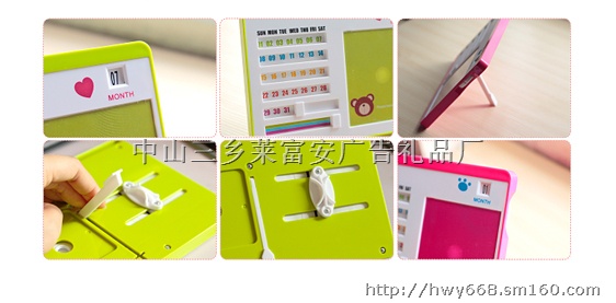 【宝贝描述】环保型的台历设计,代替纸张的浪费,只要每月调整一次就可以重复使用一万年;日历配有各种图标,可以提醒你每月的行程安排,使忙于工作的你不会忘记一些重要的日子;日历使用简单有趣,除了可以享受自己DIY的乐趣,桌面摆设或送礼都一样怡人!创作属于你个性化的作品吧!有了这款可以自己动手DIY的万年历,每个月只有变换一次就OK了,还可以用特别的标记标注出特别日子哦,关键看你自己想怎么弄了,呵呵。三种清新的颜色可选。