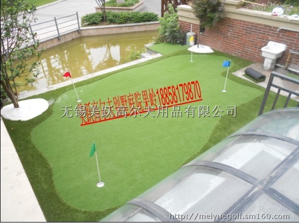 2、人造草坪果岭:模仿标准果岭做法,铺人造草坪、有园林和实用特色,在较小的空间能提供一个练习推杆的功能。