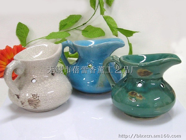 时尚新款冰裂纹釉水奶壶造型陶瓷香薰炉,用专用蜡烛点燃加热,炉顶部凹槽内加2/3水,再加几滴香薰精油,精油受热挥发,让你时刻沐浴在香芬中!