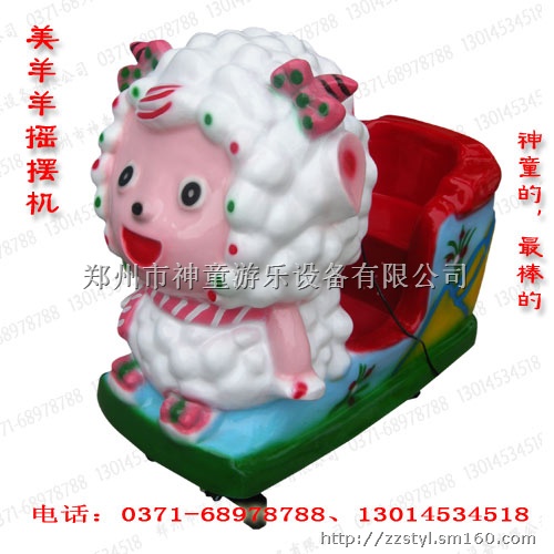 郑州市神童游乐设备有限公司专业生产儿童摇摆机,市场上生意最火爆的儿童摇摆机,各种款式任您挑选:喜羊羊儿童摇摆机、美羊羊儿童摇摆机、虎头羊儿童摇摆机、沸羊羊儿童摇摆机、圣诞老人儿童摇摆机、坦克儿童摇摆机、太空羊儿童摇摆机、灰太狼儿童摇摆机、米奇儿童摇摆机、神州8号儿童摇摆机、奥迪游戏跑车儿童摇摆机、琵琶小姑娘儿童摇摆机等等多种款式儿童摇摆机。订购热线:0371-68978788、68976788 、13014534518