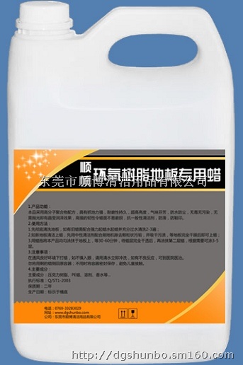 顺博环氧树脂地板专用地板蜡水采用高分子聚合物配方,具有抓地力强,耐磨性持久,超高亮度,气味芬芳,防水防尘,无毒无污染,无需抛光即有晶莹润泽效果,高强的韧性令蜡面不易磨损,抗一般性清洁剂,防滑,防鞋印。
