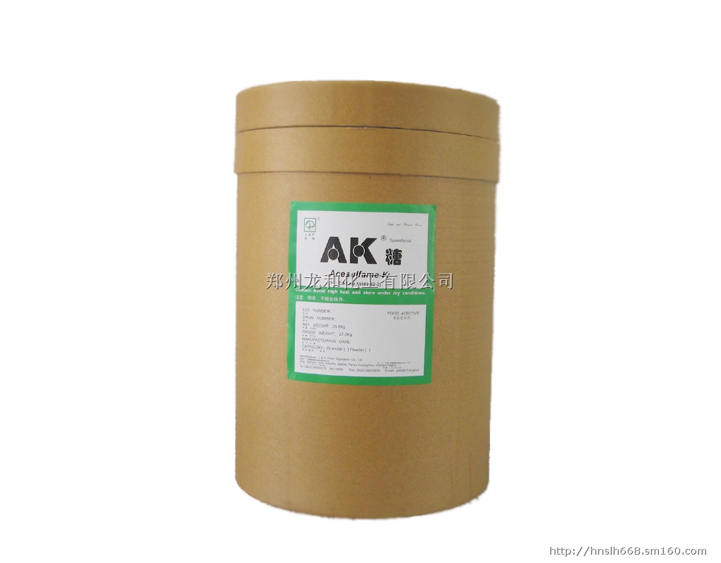 郑州龙和化工有限公司 http://www.hnlhhg.com/ AK糖的最新价格,AK糖的最新供应,AK糖的甜度,AK糖的含量,AK糖的用途,AK糖的供应商,AK糖的CAS号,等AK糖的详细信息请电讯郑州龙和化工有限公司。 中文译名:乙酰磺胺酸钾 AK糖:Acesulfame-K 或 Acesulfame Potassium。别名:安赛蜜、双氧恶噻嗪