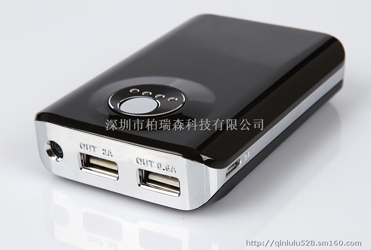 4 智能控制,微电脑智能监测并显示电量5,单键飞梭,一个按键可实现所有功能操作,自动休眠,非工作状态下自动休眠,防止电量损耗6,一机多能,适用于iPad/iPhone、手机、MP3、MP4、GPS等数码产品,即插即用,采用USB端口供电输出,插上数据线即可实现随身、随时充电7,超值共享,无须携带各种充电器,随机附赠的转接头能为各品牌手机充电规格参数产品容量:5V/8800MAH 产品规格尺寸:100*65*23(mm)输入:5V/1A输出1(OUT1):5V/2A(电流最大2.1A,自动匹配)输出2(OUT2):5V/600mA(电流最大1000mA,自动匹配)电池寿命:充放电循环次数≥500次使用方法