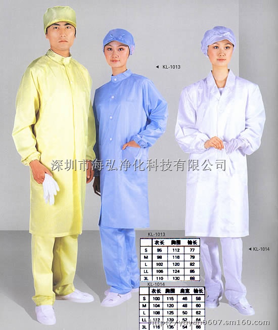 防静电大褂可分为:防静电大褂,无尘大褂,洁净大褂,无尘室大褂,白色防静电大褂,黄色防静电大褂,蓝色防静电大褂,红色防静电大褂,绿色防静电大褂,电子厂专用大褂,光电厂专用大褂,医药专用大褂由深圳海弘净化科技提供;海弘净化科技供应深圳防静电大褂,东莞无尘大褂,广州防静电大褂,净化服,无尘室净化衣,防静电衣,洁净衣,无尘衣,无菌衣、防静电无尘大褂,防静电无尘衣,防静电工服,洁净服,净化服,无尘服,无菌服、防静电服装,防静电工服,防静电工衣,防静电厂服,防静电衣,防静电服生产厂家,防静电服专业供应商。产品面向深圳、广州、东莞、惠州、佛山、花都、顺德、江门、湛江、阳江、揭阳、中山、珠海、台山、开平、梅州、汕头、清远、宁波、温州、杭州、天津、青岛、福州、厦门、昆山,徐州、苏州、南京、武汉、长沙、成都、南昌、北京、上海销售、代理、质优价廉、无尘衣采用5mm条纹或2.5mm网格导电丝涤纶布料裁剪而成,具有不产尘、不粘尘、不主动吸引灰尘、防静电的优点,适合场合10级-10万级。详细介绍:防静电衣服用不同色的防静电布制成。布料纱线含一定比例的导电纱,导电纱又是由一定比例的不锈钢纤维或其它导电纤维与普通纤维混纺而成。通过导电纤维的电晕放电和泄漏作用消除服装上的静电。由于不锈钢纤维属金属类纤维,所以,由它织成的防静电布料的导电性能稳定,不随服装的洗涤次数而变化。