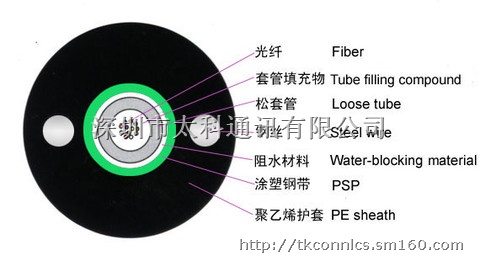 平行金属加强构件,油膏填充,中心松套式结构,钢带铠装。