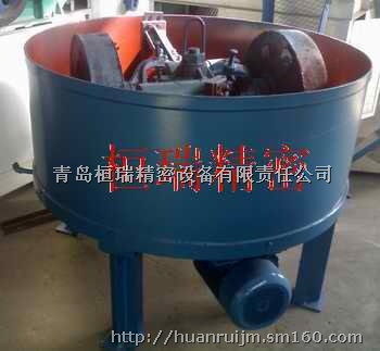 碾轮式混砂机属于间歇式混砂机,主要用于黏土砂的混制,也可以用于玻璃、化工、耐火材料、陶瓷行业中对粉粒状物料等的混合加工。它装有两个碾轮、两个刮板,碾轮有碾压、揉搓作用,使水分、黏土、其它附加物均匀地分布在砂粒表面,刮板使砂块松散,并使没混匀的砂刮到碾轮下,继续碾压、揉搓,直至全部混匀出砂。