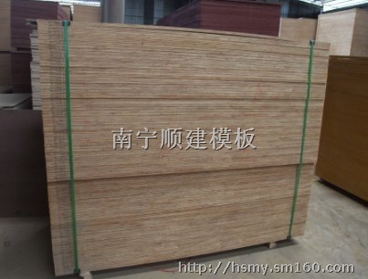 中国优质模板生产厂家,南宁顺建建筑模板生产的木质建筑模板具有以下特点:重量轻、灵活方便,适合各种中高低楼房,高层建筑、桥梁施工大跨度建筑以及墙面,混凝土立柱。幅面大,施工接缝少,操作轻便,提高支模工作效率。 不翘曲、不变形、不开裂、耐水性能好、周转次数高、使用寿命长。力度性能好、在施工过程中,易钉、易锯省去用电钻以及其它施工带来的一系列不必要的麻烦,性能优于竹胶板,大大方便施工。 本品采用全整芯优质杨木单板加高档厚面皮压制而成,有一定的保温作用,易脱模,无吸附力,幅面宽,拼缝少,拆模后,其面光滑平整,可直接装饰,脱模容易。灰作业,缩短装修工期,降低工程成本。耐腐蚀、不污染混凝土表面。防水,耐酸,耐碱性能好,在混泥土养护过程中遇到受潮不变形,可双面倒用、如使用合理,可使用周转8-10次。产品达到寿命后,可选用其中部分用装饰底衬用,还可当作安全围墙保温性能好,导热系数小,在冬季混泥土施工中可改善防冻性能,提高施工质量、有利于冬季施工。本厂模板按国家有关木模板标准生产,采用绿色环保专用胶精工制造,质优价廉。施工性能好。钉、锯、钻孔等性能优于竹胶合板、小钢板。可以根据施工需要加工成各种形状的模板。