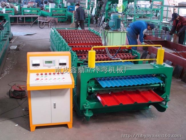 【8-130-910成型机】采用彩色涂层钢板,经辊压冷弯成各种波型的压型板,它适用于工业与民用建筑、仓库特种建筑、大跨度钢结构房屋的屋面、墙面以及内外墙装饰等,具有质轻、高强、色泽丰富、施工方便快捷、抗震、防火、防雨、寿命长、免维护等特点.