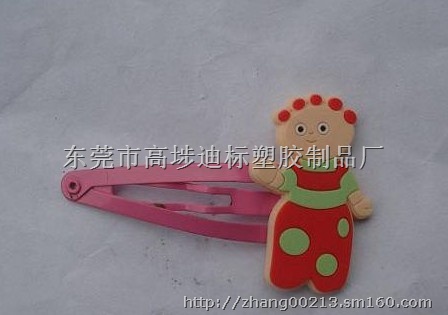 PVC软胶发饰,综合个性化pvc软胶公仔与五金夹子而成.是主要应用于小女孩头上时尚配饰,还可加印LOGO或滴胶logo,做为广告促销礼品赠送给客人.