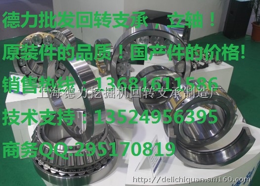 德力回转支承制造厂(电话:13681611586,QQ:295170819)大量批发挖掘机回转支承,立轴等工程机械齿轮件。德力工厂成立于2000年,工厂位于上海嘉定区;占地面积35800平方米,是一家集设计、研发、制造与销售一体化精密轴承和回转支承的中德企业,长期给德国多家主机厂配套,负责德国、瑞典、意大利等国家及东南亚地区主机厂配套。公司有多名经验丰富的德国技术人才,以回转支承为主,开发出蜗轮蜗杆回转传动装置、农用车、拖车支承等三大系列,九大结构类型,实现年产量3万套回转支承的规模。主要产品涵盖:回转支承所有工序完全自主加工,直径从149mm到5200mm的全系列,涵盖单排球轻型系列, 单排球常规系列,双排球或者双列球系列, 交叉滚柱系列,球柱混合系列,三排滚柱系列,六排滚柱系列,分体式回转支承,产品已经被广泛应用在国内外船厂、港口机械、工程机械、冶金机械、轻工机械、风力发电领域。产品广泛应用于:利勃海尔(LIEBHERR),JCB杰西博,凯斯(CASE),沃尔沃(VOLVO),卡特彼勒(CATERPILLAR),小松(KOMATSU),日立(HITACHI),(KATO)加藤,住友(SUMITOMO),神钢(KOBELCO),大宇/斗山(DAEWOO/DOOSAN),现代(HYUNDAI),JCB,久保田(KUBOTA),竹内(TAKEUCHI),石川岛(IHISCE),特克雷斯(TEREX),福田雷沃(LOVOL),三一(SANY),龙工,柳工(LIUGONG),徐工(XCMG),厦工(XGMA),中联重工(ZOOMLION),山河智能(SUNWARD)、玉柴、晋工,临工,山河智能、山推、振宇、彭浦,华立重工,江鹿,山工众友,徐挖,山猫、开元、洋马,长野,南特,华力,黑猫,勤牛,国机等国产机和进口合资工程机械品牌。