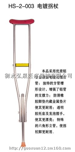 本公司产品采用优质铝合金表面处理铝管,加强型中心立管,提供更好的支撑力,防滑橡胶脚垫,内置金属垫片,使其更耐用;内管有橡胶管套,避免金属管摩擦,海绵发泡腋托和握手,让使用者更舒适;多档调节高低等,欢迎新老客户前来咨询洽谈。