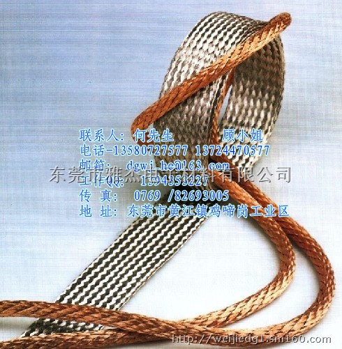 铜编织线采用优质圆铜线(0.10, 0.15, 0.20)或镀锡软圆铜线(0.10, 0.15)以多股(24.36.48锭)经单层或多层编织成。