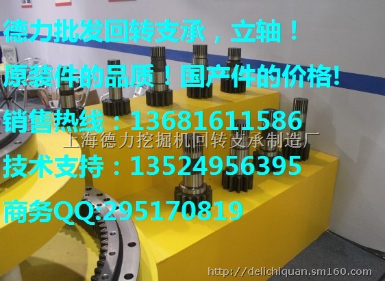 德力回转支承制造厂(电话:13681611586,QQ:295170819)大量批发挖掘机回转支承,立轴等工程机械齿轮件。德力工厂成立于2000年,工厂位于上海嘉定区;占地面积35800平方米,是一家集设计、研发、制造与销售一体化精密轴承和回转支承的中德企业,长期给德国多家主机厂配套,负责德国、瑞典、意大利等国家及东南亚地区主机厂配套。公司有多名经验丰富的德国技术人才,以回转支承为主,开发出蜗轮蜗杆回转传动装置、农用车、拖车支承等三大系列,九大结构类型,实现年产量3万套回转支承的规模。主要产品涵盖:回转支承所有工序完全自主加工,直径从149mm到5200mm的全系列,涵盖单排球轻型系列, 单排球常规系列,双排球或者双列球系列, 交叉滚柱系列,球柱混合系列,三排滚柱系列,六排滚柱系列,分体式回转支承,产品已经被广泛应用在国内外船厂、港口机械、工程机械、冶金机械、轻工机械、风力发电领域。产品广泛应用于:利勃海尔(LIEBHERR),JCB杰西博,凯斯(CASE),沃尔沃(VOLVO),卡特彼勒(CATERPILLAR),小松(KOMATSU),日立(HITACHI),(KATO)加藤,住友(SUMITOMO),神钢(KOBELCO),大宇/斗山(DAEWOO/DOOSAN),现代(HYUNDAI),JCB,久保田(KUBOTA),竹内(TAKEUCHI),石川岛(IHISCE),特克雷斯(TEREX),福田雷沃(LOVOL),三一(SANY),龙工,柳工(LIUGONG),徐工(XCMG),厦工(XGMA),中联重工(ZOOMLION),山河智能(SUNWARD)、玉柴、晋工,临工,山河智能、山推、振宇、彭浦,华立重工,江鹿,山工众友,徐挖,山猫、开元、洋马,长野,南特,华力,黑猫,勤牛,国机等国产机和进口合资工程机械品牌。
