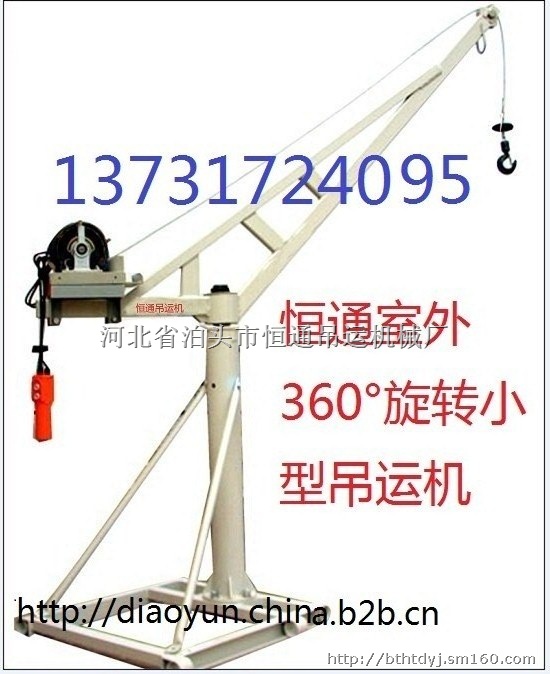 恒通小吊机最新旋臂式恒通吊运机、便携式小吊机移动式吊运机墙壁开槽机电动吊篮全自动小型吊机直滑式小型吊运机楼房上料机电动葫芦车载吊运机恒通建筑小吊机、恒通快速小型吊运机、恒通家用小吊机、恒通双柱直滑式吊运机、恒通三立柱直滑式吊运机、恒通小型吊装机、恒通小型起吊机体积小,携带方便;安装简单,将动力装置安放在阳台处,组装支架并将其插入动力装置座孔中,5分钟就可以安装好;它吊运速度快,10层楼3分钟就能打个来回,;它适应范围广:使用装潢公司,吊运公司,安装公司,搬家公司,工厂公司,修理公司,仓库库房等。恒通小吊机容易操作,安全可靠。吊运机市场前景及概述中国国民经济的良性发展全面建设小康社会战略的继续实施,促进了商品楼消费结构的升级,随着人民生活水平的不断提高,商品房成为国民消费的热点之一,老房子换新房子,小房子换大房子。无论是买了房子还是换了房子,当您把新楼房的钥匙拿在手中的时候,首先考虑的是房子的装修问题,当你购买了装修所用的沙子、水泥、地板砖、墙砖、洁具、木板等等一大堆重达几吨的装修材料,最令人头疼的问题又来了,如何将这么一大堆的装修材料搬运到你的楼上呢?然而,千百年来无论是国内还是国外,无论是长城还是故宫,高层建筑的建筑材料一直是靠人背肩扛或者是人抬上去的,稍微先进的办法就是靠滑轮吊运了。小吊机吊运机小型吊机小型吊运机