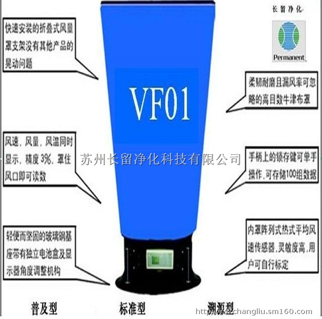VF01型风量罩用以检测HVAC系统中的通风和排风,既HVAC工程完毕后调风和控制换气次数等。仪器由一个检测量仪、尼龙风罩。手柄和底座组成。仪器采用恒功率热式风速传感器,配合各种罩口可精确测量气体流量和温度。