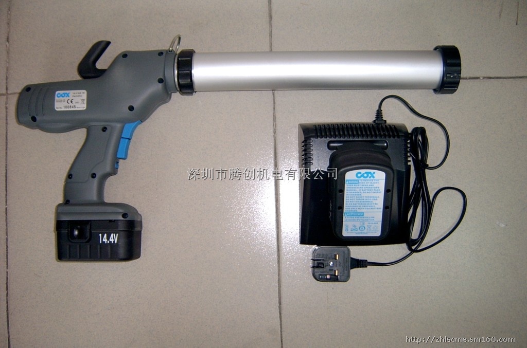 PC Cox最新设计制造的充电式电动胶枪快速,高效及易用,几乎适用于各种粘度的胶粘剂,适用于310ml,400ml及 600ml 腊肠胶,也适用于310ml,400ml及US Quart筒装胶,COX电动胶枪使用一个充满电的14.4VNiCad电池可打150支310 ml 的筒装胶。