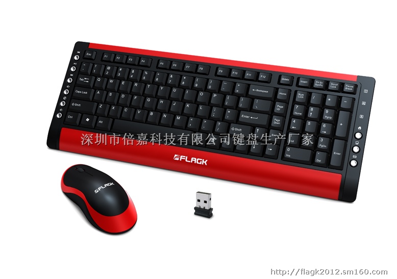 旗键]KM758键盘鼠标套装是一款集工作、娱乐、无线、人体工学及免驱等多种功能于一身的键盘鼠标套装,套装键盘是一款超薄的多媒体键盘,外观整体以黑色为主,采用的是人体工程学设计,能够有效缓解手部的疲劳。键盘左侧安排了一系列的多媒体快捷键,用户可以通过快捷按键,快速地控制多媒体播放器,实现简单的声量调整以及播放的设置。