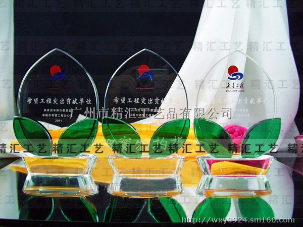 随着水晶的不断流行,水晶奖杯也逐渐在众多材质的奖杯中脱颖而出,人造水晶奖杯有着水晶晶莹剔透的优势,造型也基本可以达到金属奖杯的形状(水晶奖杯全是有几何图形拼合而成,不像金属可以开模铸造,所以太抽象的造型做不出来。),目前众多比赛的奖杯都采用水晶奖杯。材料:高规格一级K9水晶 包装:高档工艺礼盒 尺寸:按客户要求定做,此产品不是常规的