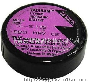 产品名称: TL-5135尺寸(MM):直径:32 高度:10产品备注: 容量 1700mAh 电压 3.6V 重量:21.5g产品优点: 高密度、高容量、低自放电率、使用温度范围宽(-55~+85摄氏度)、耐用性好 应用范围: 数控机床、伺服器、编程器、PLC、CNC、注塑机、印刷机、触摸屏、电表 、水表、实时时钟、后备记忆电源、各种测量仪器仪表、专用电子设备等