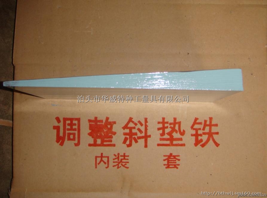 调平斜垫铁(斜铁)的性能:经久耐用,不易变形、可以焊接、调整方便、也可以斜铁下面放置平垫铁,便于提高调整精度。可以随时调整设备或者设施并固定;可以依据使用环境、位置、技术要求等,设计斜铁。