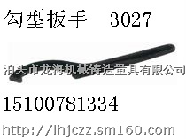 勾形扳手:又称月牙形扳手,俗称勾扳子,用于拧转厚度受限制的扁螺母等;专用于拆装车辆,机械设备上的圆螺母,卡槽分为长方形卡槽和圆形卡槽.