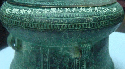 CY-0045古铜绿 创艺专业生产金属仿古染色及金属表面处理剂品种齐全,产品优质.热线:0769-85304981 古铜绿:古铜绿 铜绿水 铜着绿剂 铜绿染色剂 古铜绿染色剂 本产品系铜件表面染色液,具有色泽稳定均匀,操作方便,于铜件表面装饰.