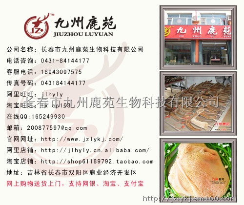 长春市九州鹿苑生物科技有限公司 总部地址:吉林省长春市双阳区鹿业经济开发区