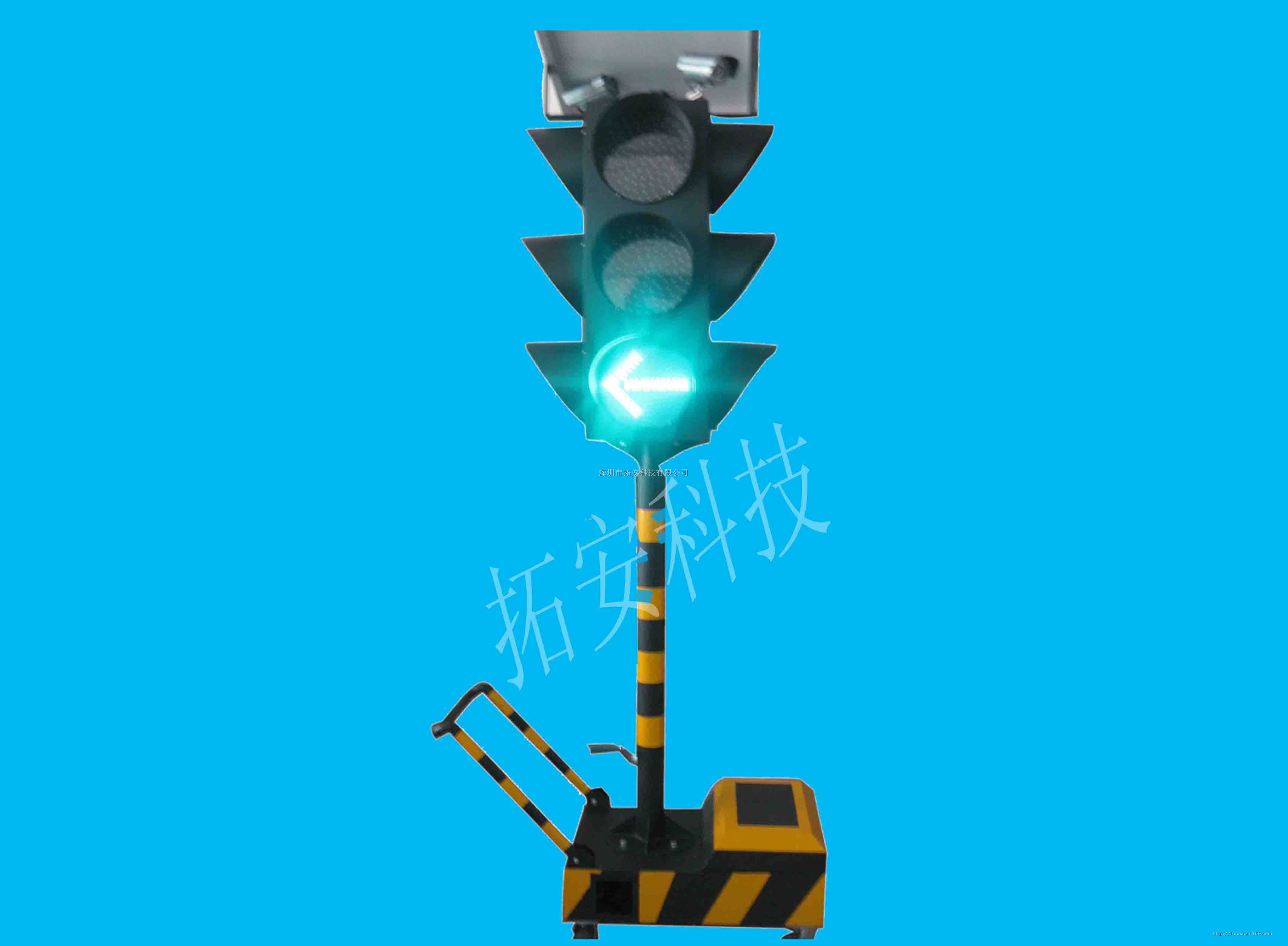 移动式交通灯为我司使用JK-B4控制器控制系统的一体化交通设备。并为最新研制开发,功能齐全的人性化产品。无需现场铺砌电缆,无需现场安装,即可实对交通路口实行有效安全控制及管制。以最大人性化和最低成本实现交通路口安全。移动交通灯也可以早出晚归,让您安全放心使用。