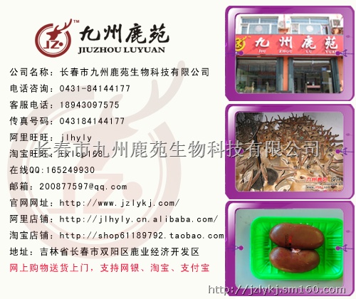 长春市九州鹿苑生物科技有限公司 总部地址:吉林省长春市双阳区鹿业经济开发区