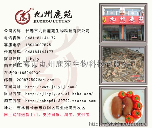 长春市九州鹿苑生物科技有限公司 总部地址:吉林省长春市双阳区鹿业经济开发区