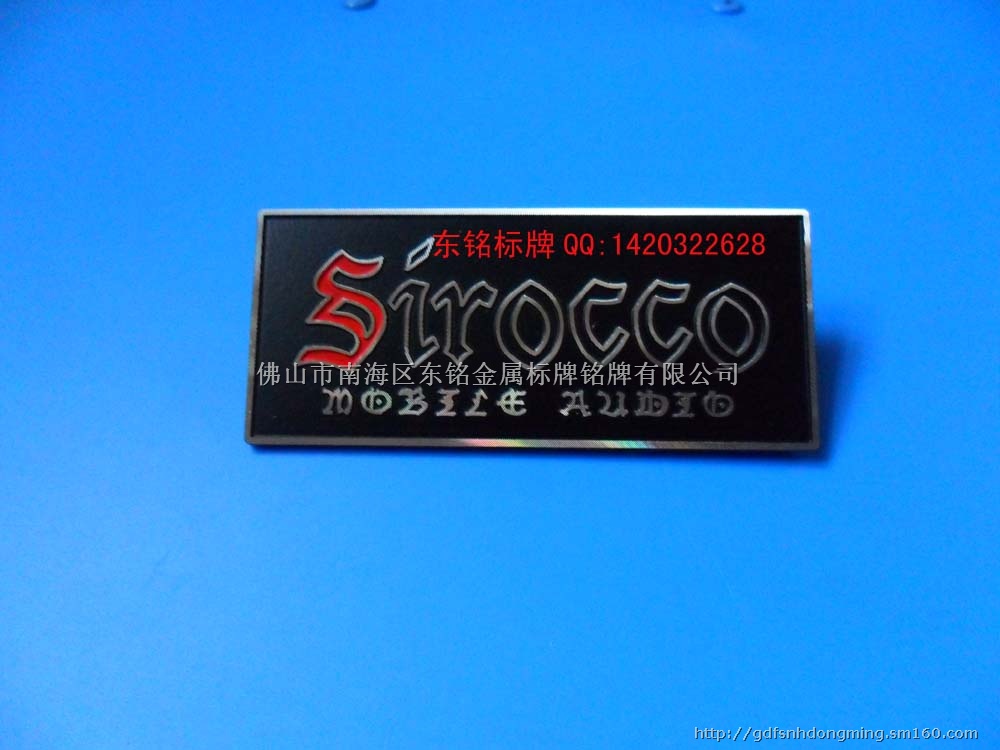 广东省佛山市东铭五金标牌铭牌制作13380228986专制铝标牌也叫高光铝标牌.又叫压铸铝铭牌一般采用金属铝做原材料.标牌大小可根据客户实际的需求,厚度一般在1MM到3MM,字体或LOGO一般凸起来0.3-1.8MM,表面有拉丝条纹路,有折光效果,立体效果相当强的一种金属标牌.
