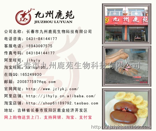 长春市九州鹿苑生物科技有限公司 总部地址:吉林省长春市双阳区鹿业经济开发区